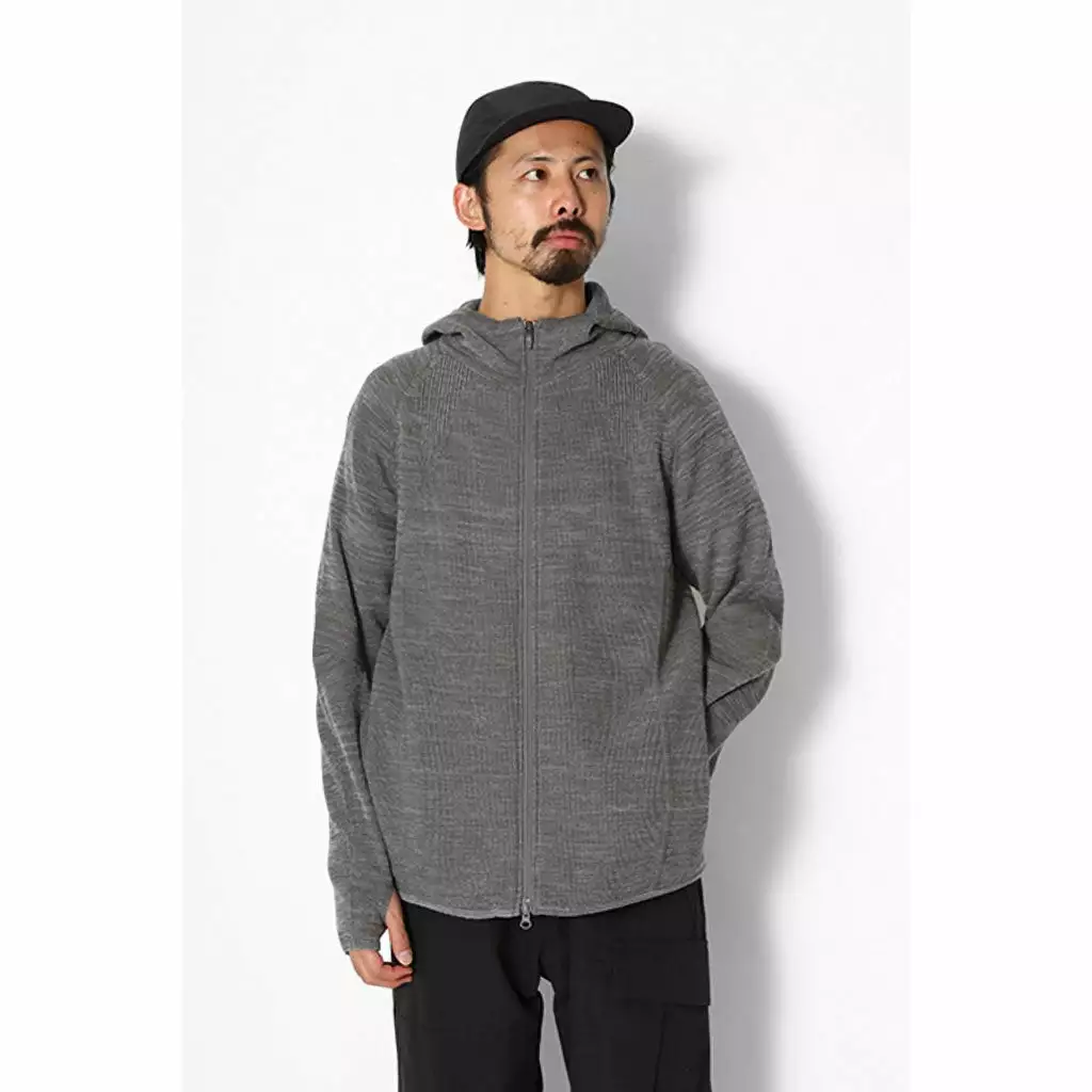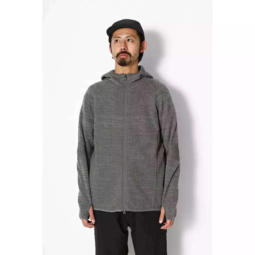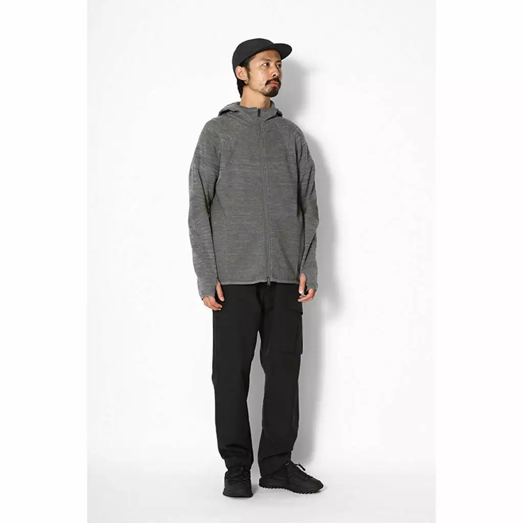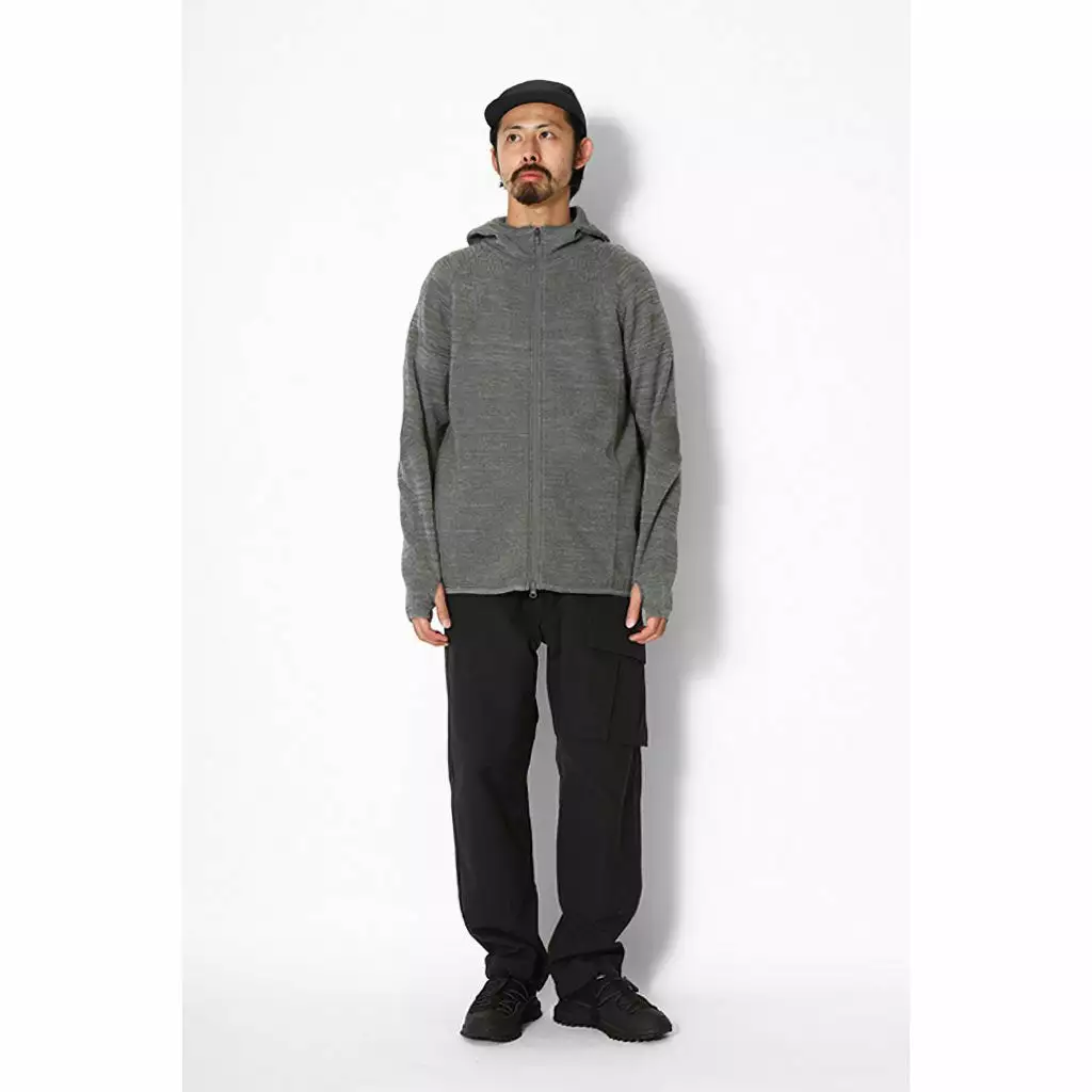 Applying their trademark design sensibility to the field of technical apparel, Snow Peak’s WG (WHOLEGARMENT) series is engineered to perform with the natural shape and movement of your body. These pieces have been created in Snow Peak’s home city of Niigata, Japan, through an advanced three-dimensional knitting process that results in a seamless garment. No scratchy seams, no irritation, no fuss. The result is a super stretchy, insanely comfortable jacket that combines mesh and synthetic fabric panels for unsurpassed breathability and ventilation. This is a soft hoodie that will stay comfortable in variable climatic conditions, so you can wear it all summer long, for everything from urban weekday commutes to weekend camping trips