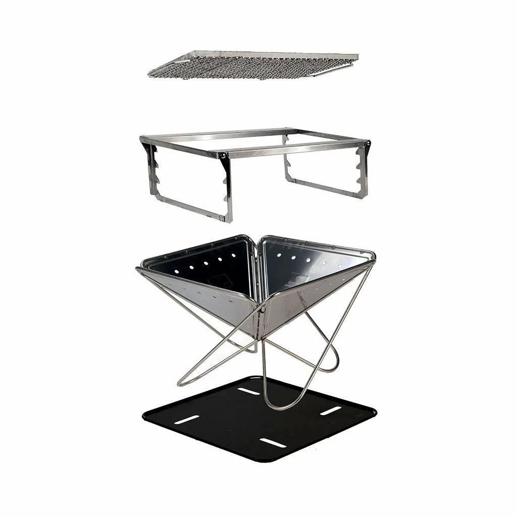 - Includes a base plate which reflects the heat away from the ground to protect it from the heat