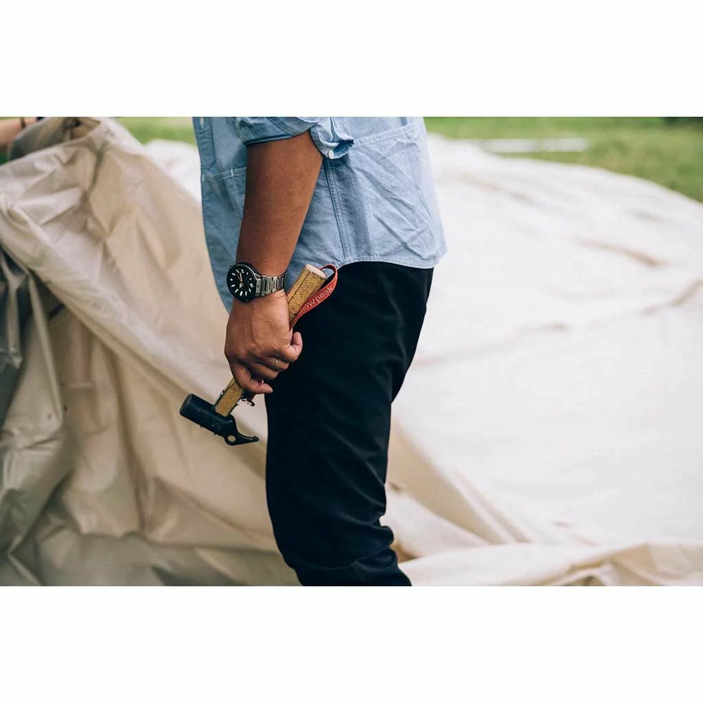 Designed in Japan, the Steel Head Peg Hammer is made of forged steel using a historic manufacturing process. It’s the perfect tool for driving solid stakes into the ground and removing them too, so you won’t hurt your hands or ruin your boots trying to drive stakes into rock solid ground (or wind up with bent tent pegs). The Steel Head Peg Hammer has a solid wood handle, a strap for safe hammering and an extended head for easier stake removal