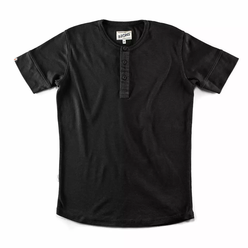 Traditional styling comes into its own with this classic Elder Henley Short Sleeve Shirt from British brand &SONS. Single jersey 100% natural raw cotton and a three-button neck opening combine to give an authentic Henley Shirt.