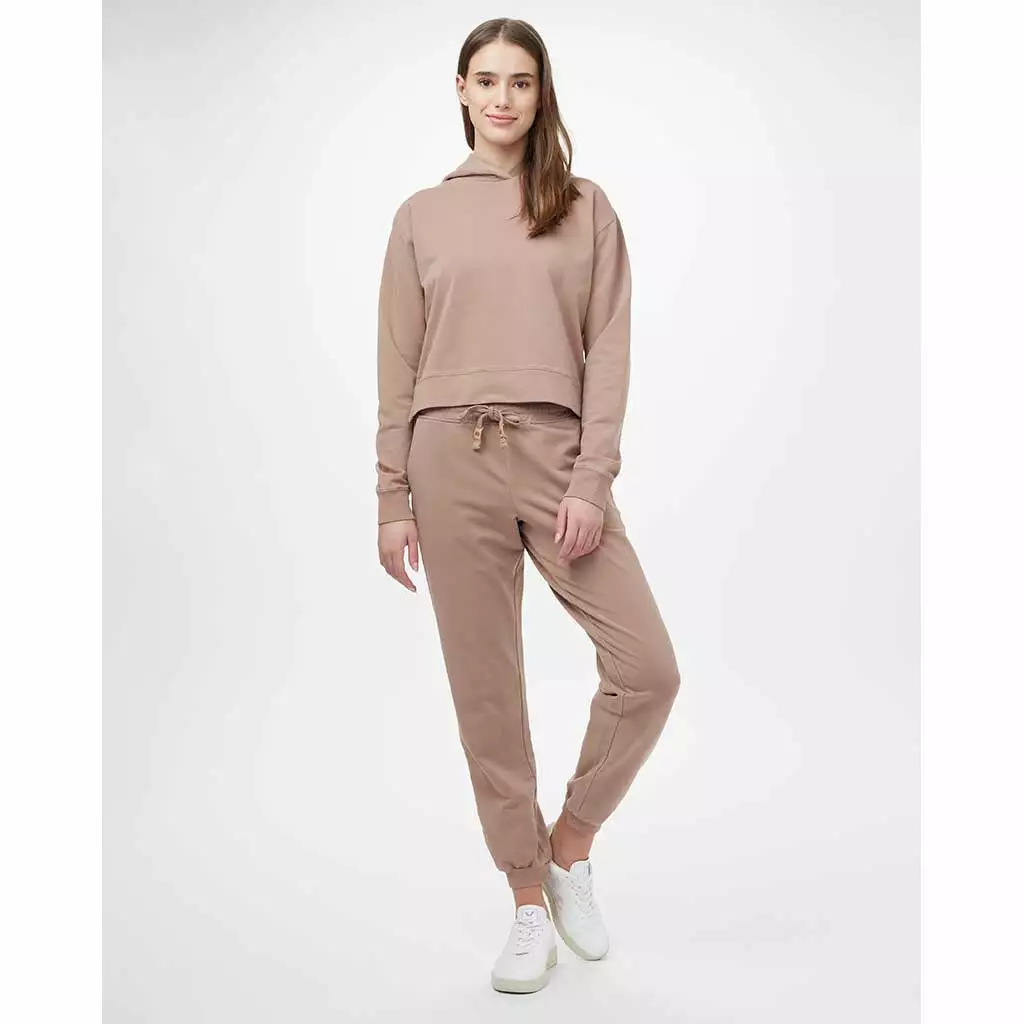 Made from our Eco French Terry blend of 81% organic cotton, 14% recycled polyester, and 5% spandex, this regular fit jogger has a tapered leg with a 31″ inseam and is finished with ribbed cuffs. The mid-rise style has a waistband drawcord for adjustable fit, making this jogger great for everyday wear.
