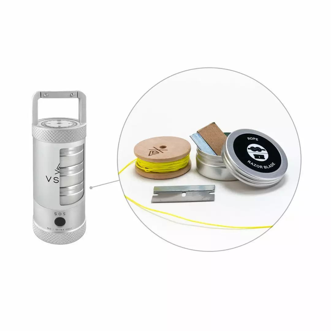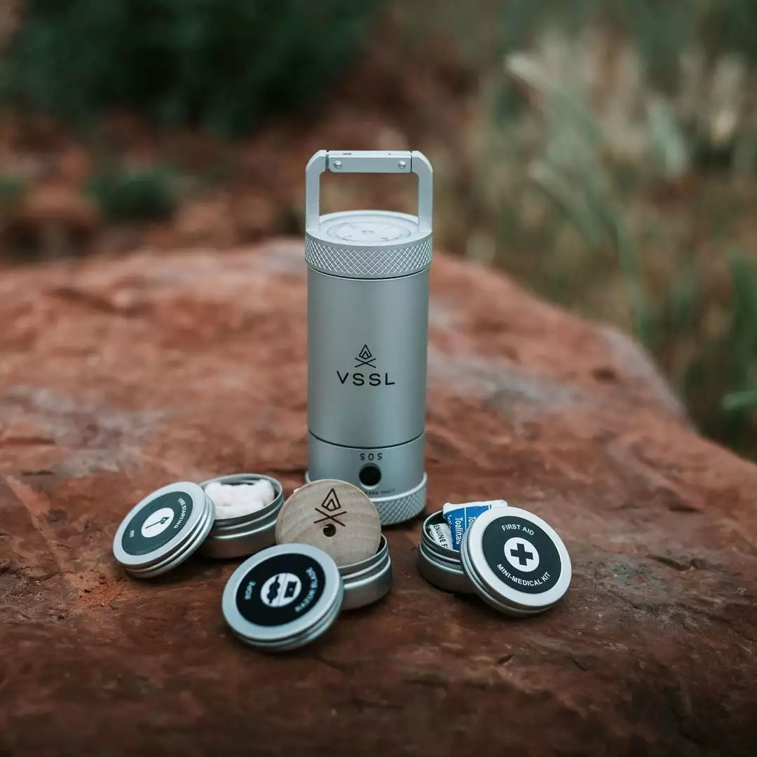 Canadian innovators VSSL introduced something truly spectacular with the original Camp Supplies, and this mini version works to the same concept and meticulous manufacturing. With a military-grade, aluminium casing, built-in LED survival torch, and a handy carabiner end cap, this survival cache is your essential camp supplies adventure kit.
